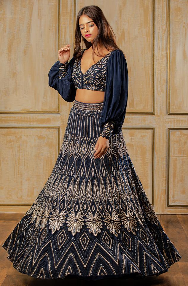 Midnight Blue hand embroidered blouse and a lehenga